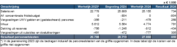 Resultaat personeelslasten reguliere bezetting